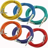 Seismic Audio - SAGC10R-BRPGYO-- 10 Foot (6 Pack) TS 1/4" to 1/4" Right Angle TS Guitar Cables Colored